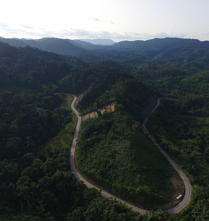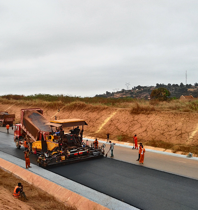 剛果(布)國(guó)家1號(hào)公路,南起該國(guó)經(jīng)濟(jì)中心黑角,北至首都布拉柴維爾,全長(zhǎng)近600公里,我司作為專業(yè)分包商,包攬了三分之一的工程量,承擔(dān)起穿越馬永貝原始森林施工難度最大的一段。