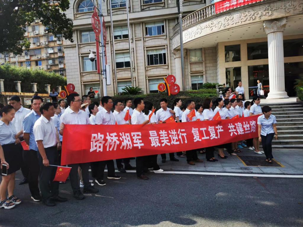 " 走出國(guó)門,你代表的就是中國(guó) ",8 月 21 日上午 9 點(diǎn),湖南路橋大院內(nèi)旗幟飄揚(yáng),數(shù)百名員工及家屬整齊列隊(duì),為湖南路橋包機(jī)赴格魯吉亞復(fù)工復(fù)產(chǎn)團(tuán)組壯行。包括管理人員、施工技術(shù)人員、設(shè)計(jì)人員等在內(nèi)的 142 名湖南路橋員工,于當(dāng)日下午搭乘包機(jī)從長(zhǎng)沙遠(yuǎn)赴格魯吉亞參與 E60 高速 F2 標(biāo)段項(xiàng)目建設(shè)。